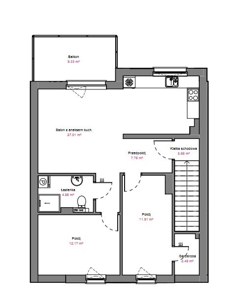 pierwszym piętrze o pow. 71,85 m2 wraz z balkonami o pow. ok 9 m2.