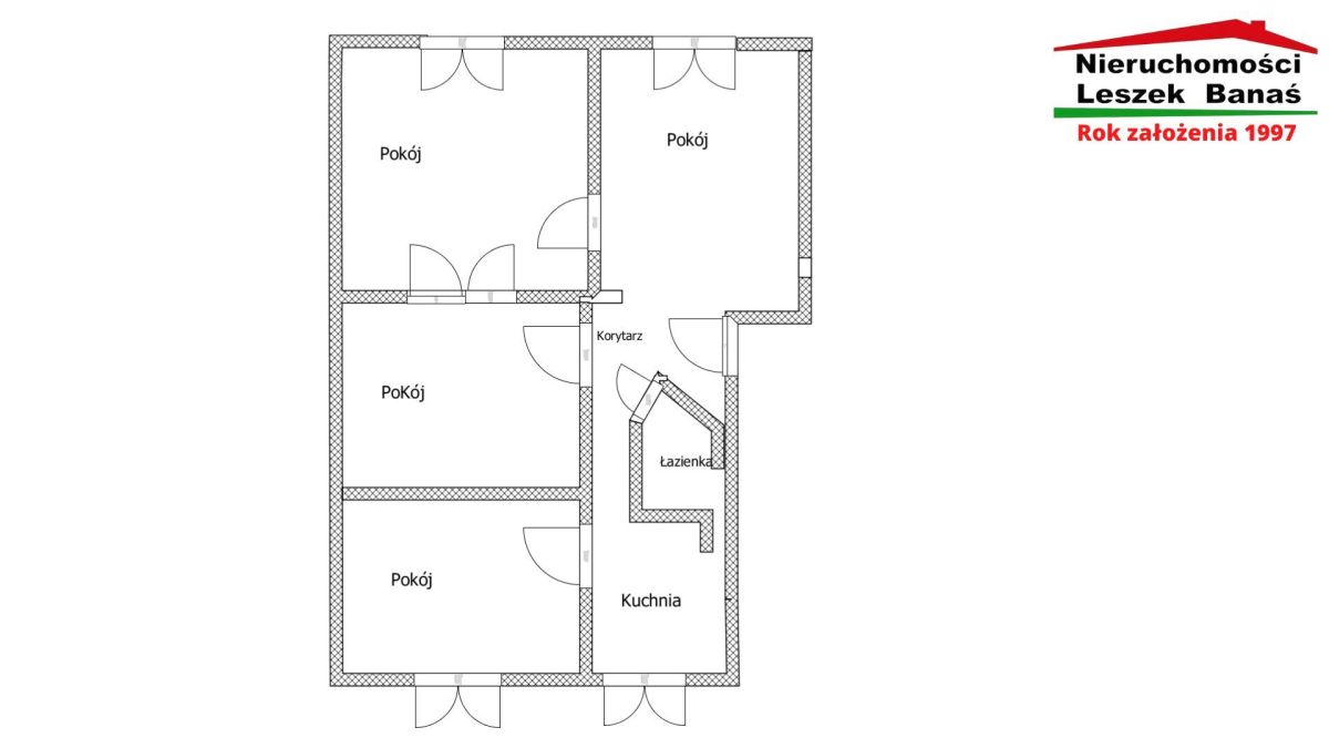 4 pokoje (3 przejściowe, 1 samodzielny - idealny np. na sypialnię lub gabinet),oddzielna kuchnia,łazienka,przedpokój. Centralne ogrzewanie piec gazowy dwufunkcyjny.
