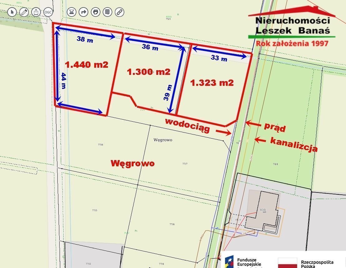 Węgrowo Działka z wydaną Decyzją o Warunkach Zabudowy budynkiem mieszkalnym jednorodzinnym w bezpośrednim sąsiedztwie Grudziądza . Media prąd woda i kanalizacja w pobliżu działki. Sąsiednie działki 1.323 m2 i 1.300 m2 już sprzedane . Bardzo dobra lokalizacja.