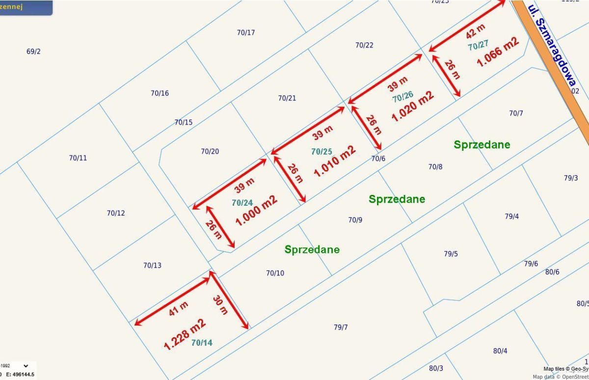 Działka w bardzo dobrej lokalizacji przy ulicy Szmaragdowej.