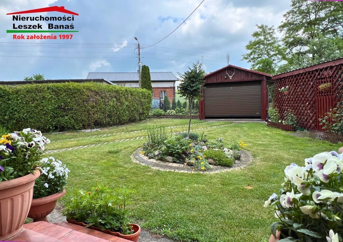 Na działce o powierzchni 905m2 , ogrodzonej i zadbanej, znajduje się także garaż i miejsce do przechowywania drewna, co sprawia że nieruchomość ta jest kompletna i gotowa do zamieszkania. Wjazd na posesję wyłożony jest kostką, a od strony lokalu użytkowego znajdują się miejsca parkingowe, co zapewnia wygodę dla mieszkańców oraz klientów lokalu.