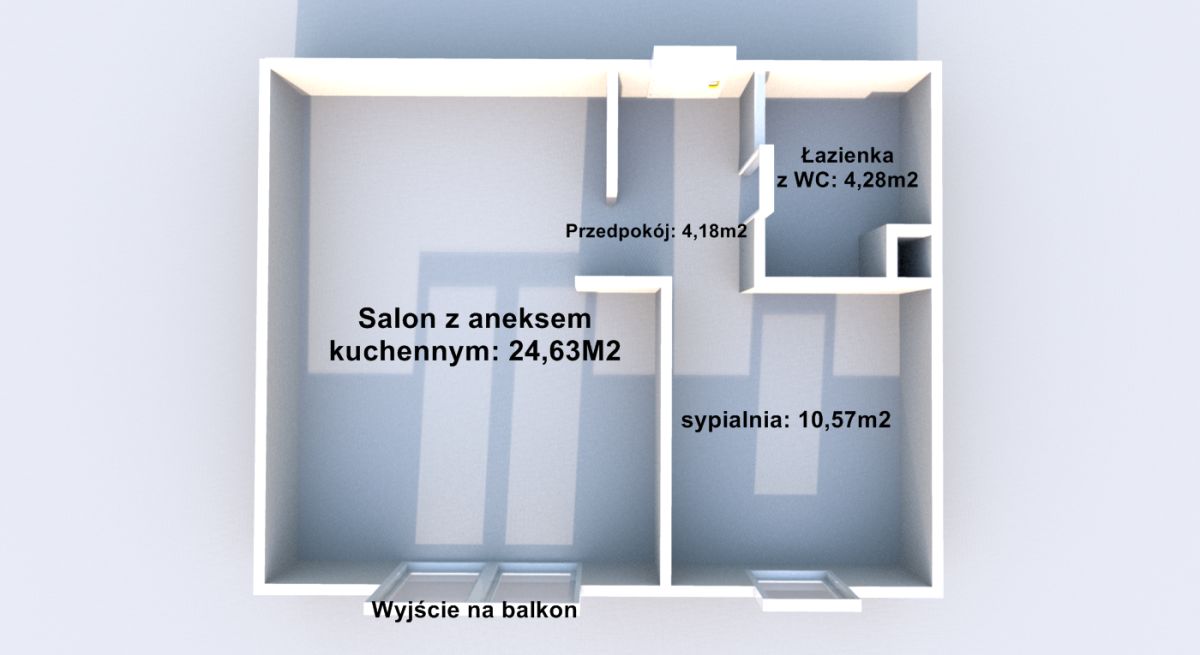 Mieszkanie składa się z dużego salonu z aneksem kuchennym, sypialni, łazienki z WC oraz przedpokoju. Dodatkowo, z salonu jest wyjście na balkon, na którym można relaksować się na świeżym powietrzu.