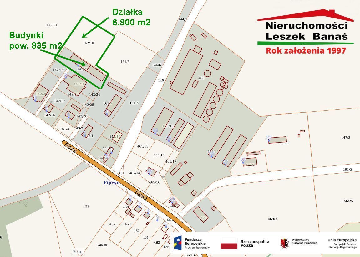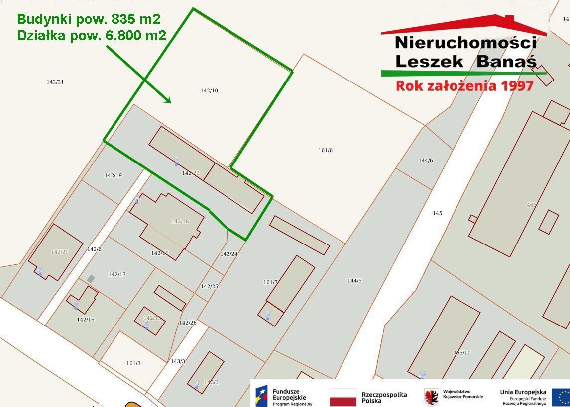 Dwa budynki do wykorzystania na cele usługowe , handlowe, produkcyjne o pow użytkowej 418 m2 i 417 m2. Pierwszy budynek wybudowany w 1972 r składa się z dwóch pomieszczeń , drugi wybudowany w 1985 r składa się z kilku pomieszczeń wyposażony w sieć wodono-kanalizacyjną, centralne ogrzewanie , ściany zewnętrzne docieplone styropianem .Tren od frontu budynków utwardzony płytami betonowymi.