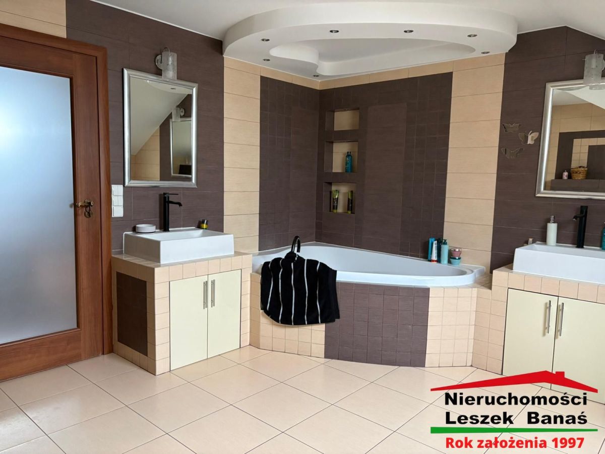 Dom wyróżnia się solidnym wykonaniem, funkcjonalnym rozkładem oraz pięknie zagospodarowaną działką z licznymi nasadzeniami. To idealna propozycja dla osób poszukujących przestrzeni, komfortu i wysokiego standardu życia w spokojnej lokalizacji.