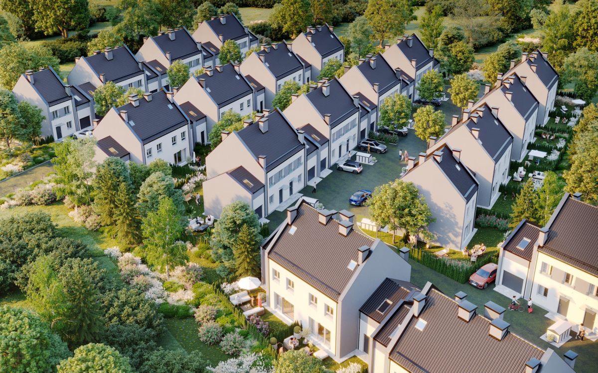 Kameralne osiedle składa się z nowoczesnych, dwukondygnacyjnych budynków, zaprojektowanych z myślą o wygodzie mieszkańców.